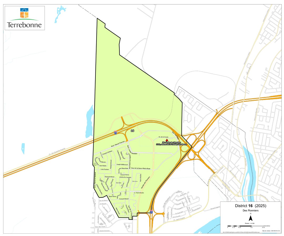 Le territoire de la Ville de Terrebonne est divisé en 16 districts électoraux, chacun représenté par un conseiller ou une conseillère municipale. Cette division permet une représentation équitable des citoyennes et citoyens au sein du conseil municipal.